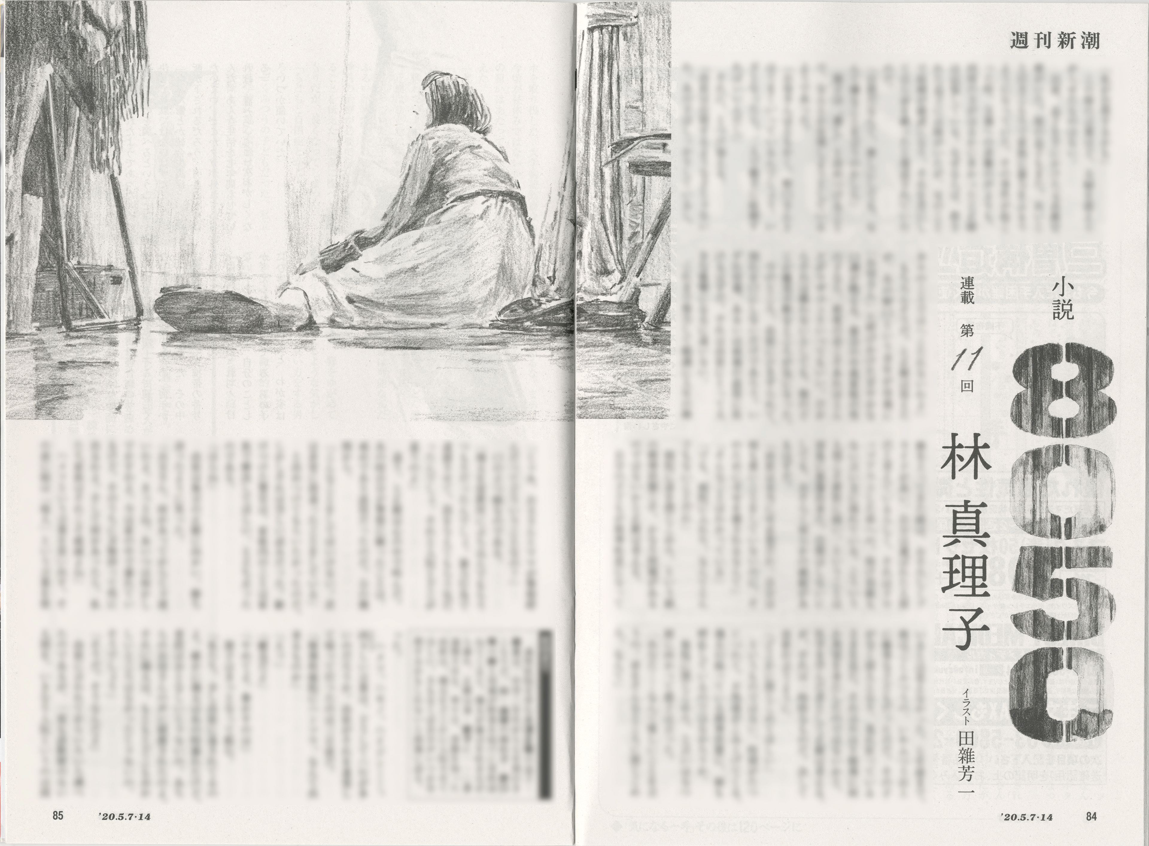 林真理子『小説8050』「週刊新潮」連載(2020.2.27「8号」〜2020.11.05「42号」)挿画題字担当